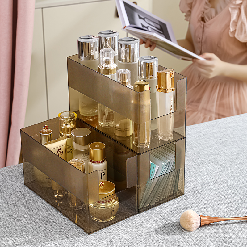 桌面化妆品收纳盒大容量置物架护肤品面膜口红透明储物盒可叠加